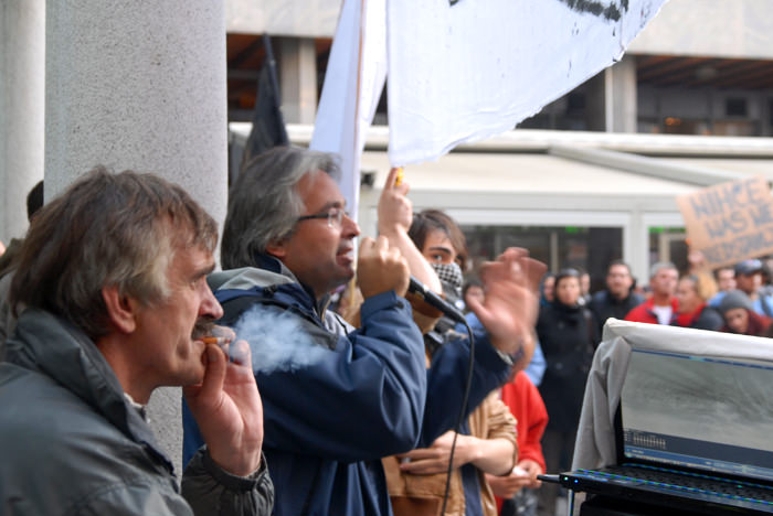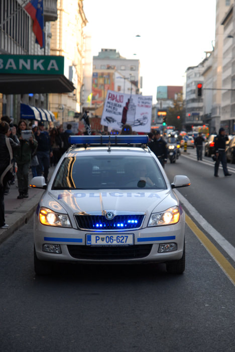 Množica ljudi je bila varovana s policijo, oz. policija je varovala objekte, ki pa niso bili niti najmanj ogroženi – ravno nasprotno – prav prijetno je v parku dišalo po marihuani.. Okoli 17. ure se je množica v strnjeni koloni odpravila proti Borzi – zopet varovana s policisti, ki so sproti zapirali ceste.