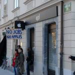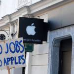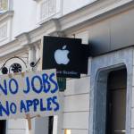 Pred desetimi dnevni je bila odprta nova Apple – EPL trgovina na Kongresnem trgu v Ljubljani. Včerajje bilo na Kongresnem trgu zborovanje Occupy Ljubljana, na katerem je bil predstavljen zanimiv transparent, ki sta ga dva udeleženca skoha držala v rokah pred EPL trgovino. Slogan je bil – No Jobs No Apples. Torej sta se ta dva udeleženca v bistvu zavzemala za kapitalizem, če prav razumem to?