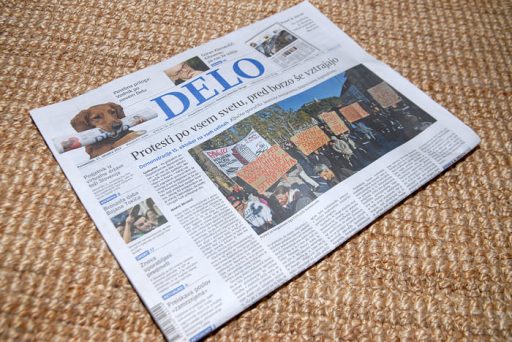 Danes zvečer je v Narodni galeriji potekala prireditev, ki so jo v družbi Delo poimenovali Iz starega v novo. Predstavitev prenovljegena časopisa Delo je vodila odgovorna urednica Dela Romana Dobnikar Šeruga, ki naj bi ji škotska prinašalka, psička Wi prinesla prenovljen časopis – vendar je psička ubrala svojo pot in odšla mimo nje!