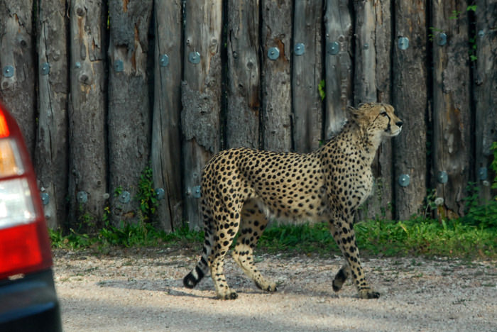 Ko se je iznenada pojavil gepard sredi ceste, so ljudje začeli mrzlično zapirati okna – očitno gepard najrajši skoči v avto preko okna, kajne in tudi premikanje v vozilih je bilo zanimivo – ljudje so se presedali bolj na sredino! Namesto da bi uživali v čudovitem pogledu na čudovito žival, ki ji definitivno ni mesto v zaprtem oddelku Zoo-ja, so se ukvarjali z lastno varnostjo!