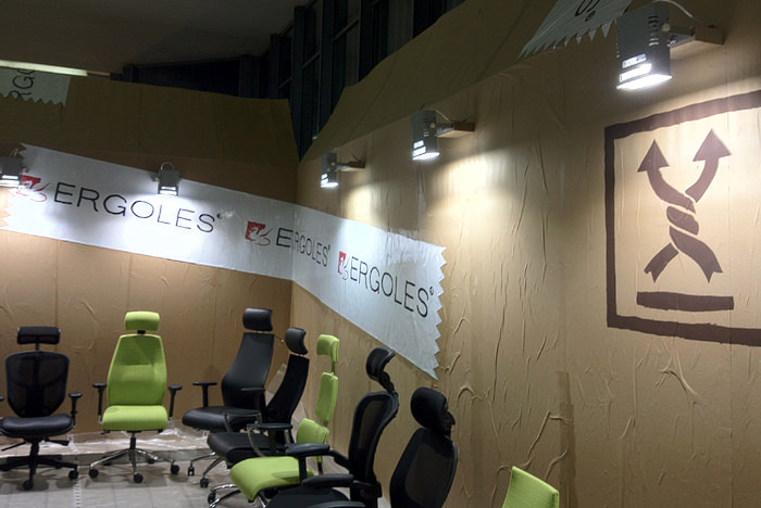 In primerek razstavnega prostora podjetja Ergoles je tisti, ki sem si ga najbolj zapomnil. V bistvu me je zanimalo, kdo je naredil njihovo kreativo, da sem se o tem pozanimal kar pri njih na razstavnem prostoru. In odgovor, da je to naredili ZEK Crew, mi je povedal vse. Fantje so dejansko naredili, že zgoraj omenjeno “out of box” (dobesedno) zadevo, ki privablja poglede in privlači obiskovalce.