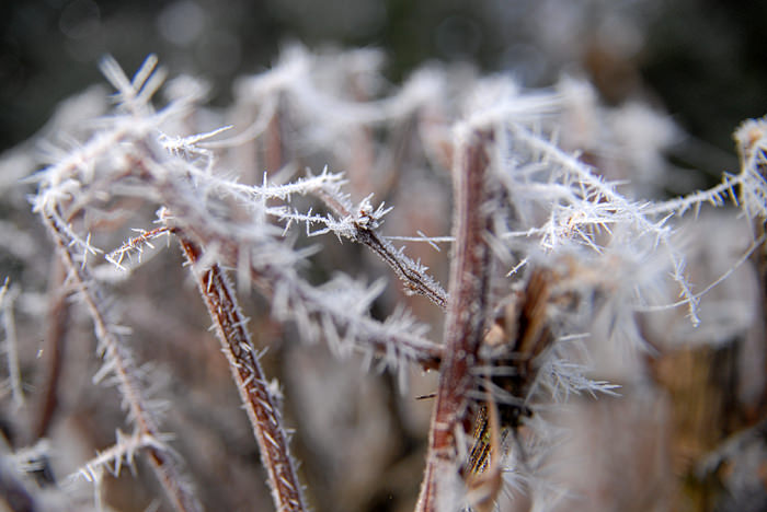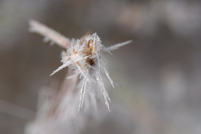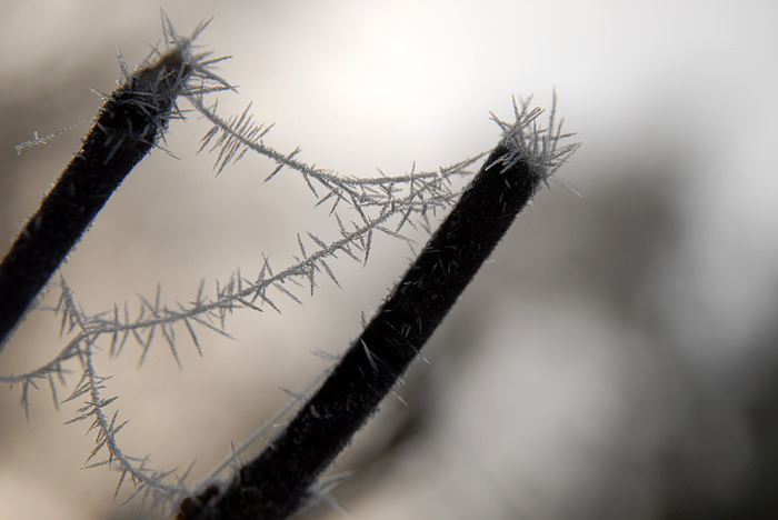 Medtem ko se Ljubljana že več dni zaporedoma skriva v megli, je 45 kilometrov iz Ljubljane, na Izlakah, posvem drugačna situacija. Nikjer megle, niti noči čez dan, kljub temu da so jutra ledena – posledično se na rožah pojavijo zanimive stvari – predvsem na pajčevini, ki postane zamrznjen fraktal. In če človek vzame v roke fotoaparat, nastanejo spodnje fotografije.