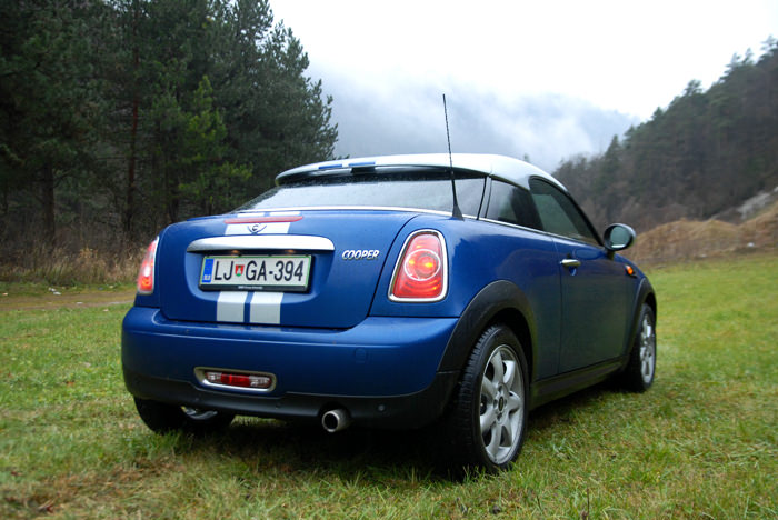 Prvoten naslov je bil mišljen bolj v stilu 24ur – Kako se mu dvigne, ali Pogled od zadaj – Mini Cooper Coupe?! Ker pa nisem 24ur, je naslov precej bolj preprost. Fotografije so deževne, oz. se vidijo kapljice na Miniju, ker takšno je bilo včeraj vreme, ko sem po Sloveniji iskal sonce, vendar ga nisem našel, kljub prevoženim več kot 600 kilometrov.