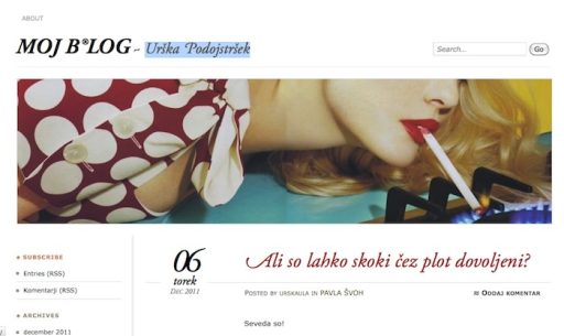 Vsake toliko časa se na naši blog sceni pojavi kakšen blog, ki me preseneti. Blog Pizdun.org je eden izmed njih, njegovo ime domene je precej drugačno, kot so zapisi na njem. Urška Podojstršek, ki stoji za njim in piše blog, je o sebi zapisala: