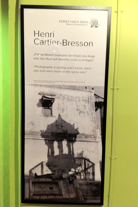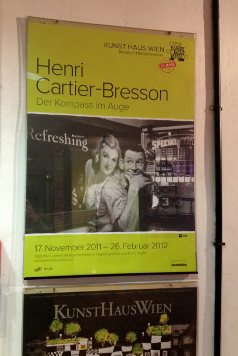 Na razstavah je prepovedano fotografiranje – jaz sem povsem zavestno kršil to pravilo na razstavi francoskega fotografa Henri Cartier Bressona (22.8.1908 – 3.8.2004), ki velja za “očeta” sodobnega fotožurnalizma, ki je na ogled do 26. februarja 2011 v Kunst Haus Wien – v Museum Hundertwasser. In zakaj sem kršil prepoved fotografiranja? Preprosto zato, ker so se mi zdeli liki (ljudje) na razstavi, sama razporeditev fotografij in predvsem fotografije vredne tega, da me nekdo dobi in me pošteno okrca. Poleg tega pa je taisto stvar počel tudi Henri Cartier Bresson, ki je beležil življenja preko fotografskega objektiva.