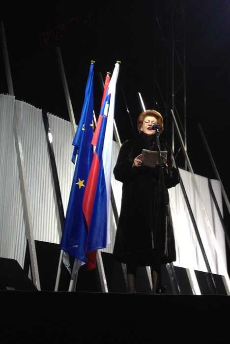In sem šel v Maribor, ki je tako postalo Evropska prestolnica kulture in bil presenečen že od samega začetka naprej. Odlična organizacija, kar pomeni da je bilo veliko varnostnikov, ki so znali povedati kje je vhod na prizorišče, kot tudi da je bilo celotno prizorišče že na pogled resničen presežek – na eni strani VIP tribuna, kjer so zmrzovali vsi znani Slovenci (največ politikov), na drugi strani oder in vmes množica ljudi (po moji oceni več kot 5000, lahko pa se seveda motim).