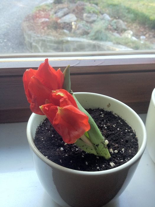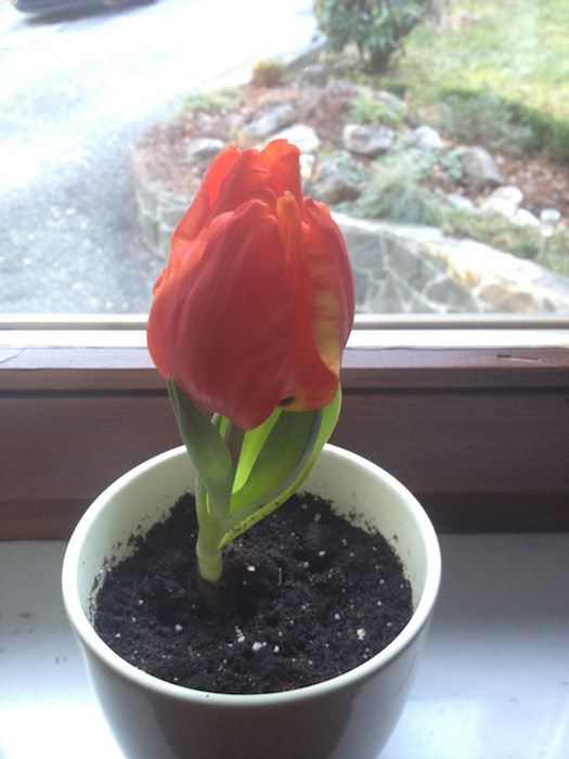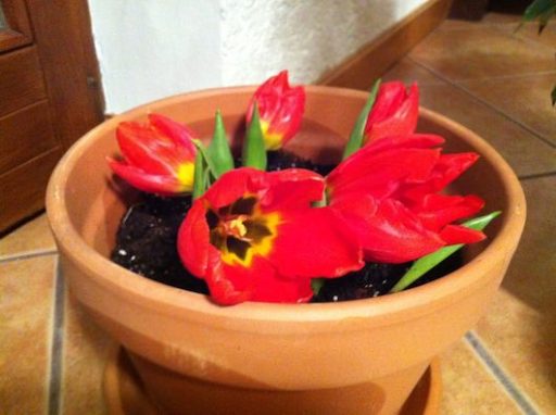 Zgodba gre takole. Boljša polovica je dobila za darilo, iz Nizozemske, čebulice tulipanov. Že kakšnih štirinajst dni sem poslušal, da jih je treba čim prej posaditi v zemljo, da bodo začeli cveteti. In včeraj sem našel čas, šel nabaviti zemljo in jih pozno popoldne vtaknil vanjo. Par ur kasneje se je zgodilo tisto, kar ne morem verjeti da je možno – kot bi bili tulipani na stereoidih, namreč tulipani so že začeli cveteti. In besedna zveza – vidim kako trava raste, je tukaj povsem na mestu, saj so tulipani dejansko rastli pred mojimi očmi.