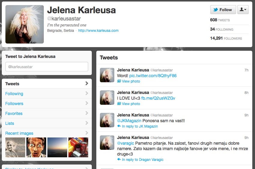 22/02/2012Jelena Karleuša – Twitter in njen način komunikacije V Sloveniji je število “zvezd”, ki so na Twitterju precej majhno, saj jih večina poskuša uspeti s podarjanjem…