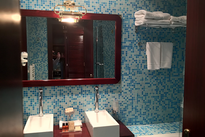 Ko sva prišla v hotelsko sobo sem bil dodatno presenečen – velika in izredno okusno opremljena soba, z dovolj omarami in veliko posteljo, zastonj internet, balkon, dve pisalni mizi in veliko kopalnico z banjo – da tega, da so v sobi kopalni plašči, da ima hotel odlično urejen in zelo čist wellnes, v katerem sva bila edina gosta in da ima hotel vrhunsko restavracijo (o kateri bom pisal kasneje), niti ne omenjam. Totalno navdušen in edina moteča stvar je zvonjenje cerkvenega zvonu v mestu v tem trenutku (pač nisem navajen na to!).