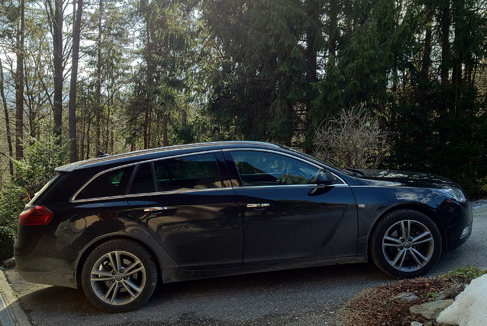 Vendar Insignia je precej velik avto in pomislek, ki sem se ga spomnil je bil namenjen velikosti vrat, ki jih imava v garaži. Ko sem se peljal s testnim avtom proti domu, sem bil totalno navdušen. Kljub velikosti avta, me le to ni motilo – imel sem precej velike strahove, glede na to, da sem navajen manjših vozil, da mi s tem ne bo uspelo najbolje manevrirati. Insignia s Cosmo opremo ima vse – pametne lučke, ki se same preklapljajo in osvetljujejo ovinke, avtomatsko ročno zavoro, vso možno in nemožno elektroniko… in avto se pelje super. Vendar ko sem avto pripeljal domov, avto ni šel v garažo – preozka vrata! In sem peljal avto nazaj v avtohišo, z malce žalosti – predvsem boljša polovica je bila navdušena nad vozilom.