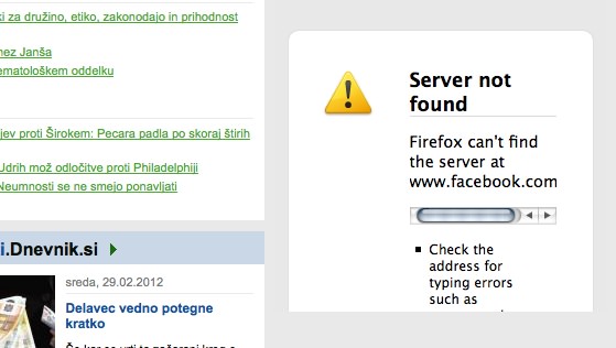 Ne zgodi se ravno pogosto – v bistvu se mi do sedaj še ni, da bi poskušal priti na spletno mesto http://facebook.com in bi bilo to nedosegljivo. Ampak očitno se stvari spreminjajo in tudi prihaja do takšnih situacij, ko se zgodi kaj takšnega tudi največjim. In ja, zame je Facebook down (že več kot pol ure), nekateri drugi pa lahko dostopajo do njega.