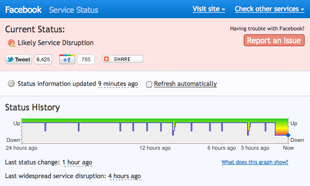 #Facebook is down or having service trouble, based on user reports/other sources downrightnow.com/facebook ~l6