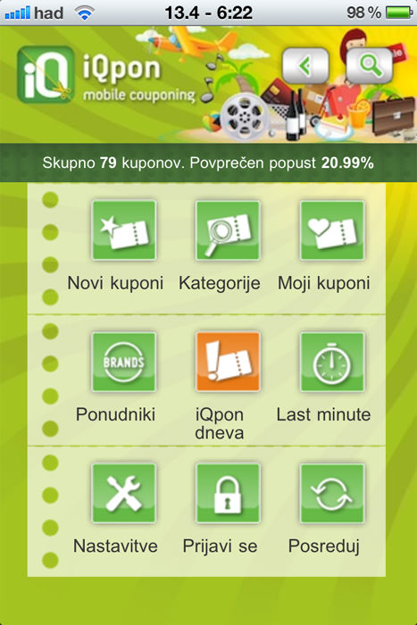 p.s.: ničesar nimam z iQponom, vendar se mi zdi ideja briljantna in vem, da bo uspela! Sam bi dodal še geolokacijske kupone (ki se uporabniku prikažejo, ko je v nekem območju in so definitivno zanimivi), prav tako pa je še par bugov v sami aplikaciji, ki jo je potrebno do konca spolirati!