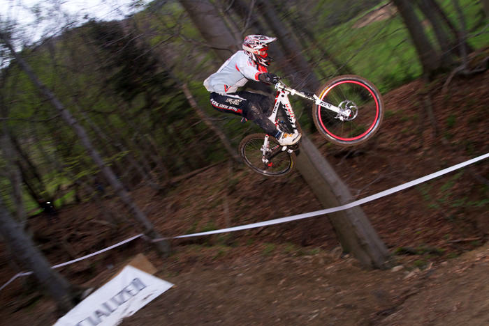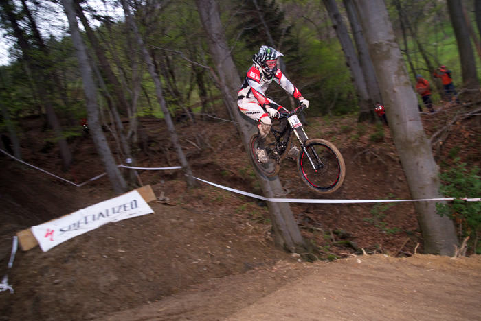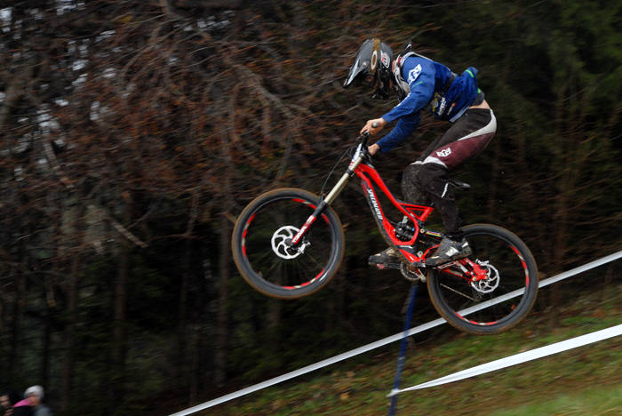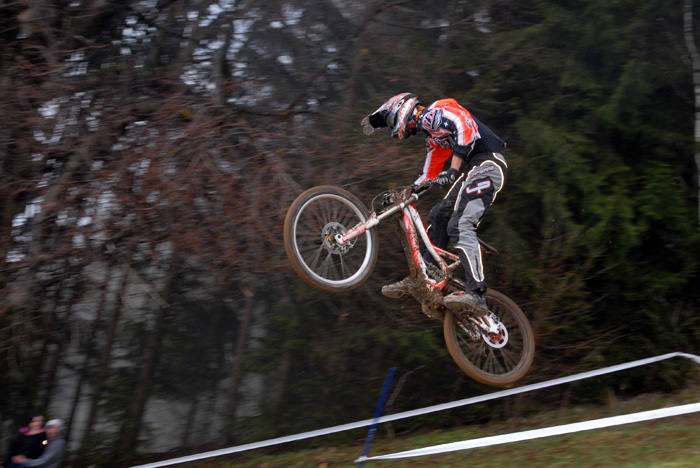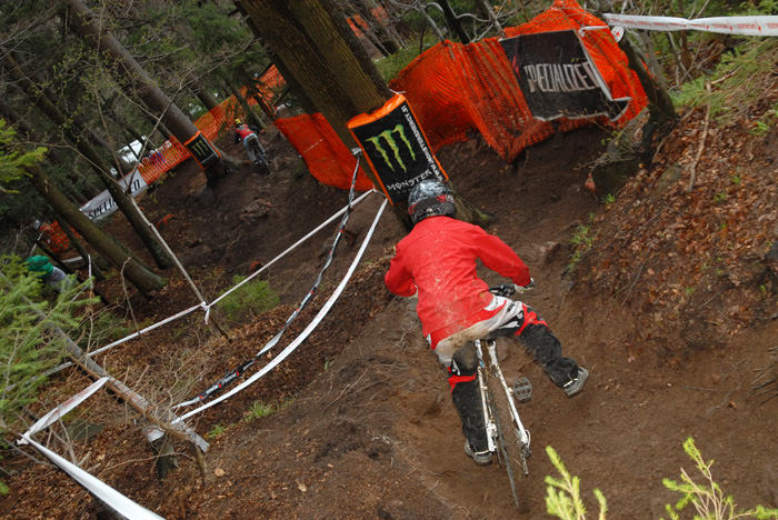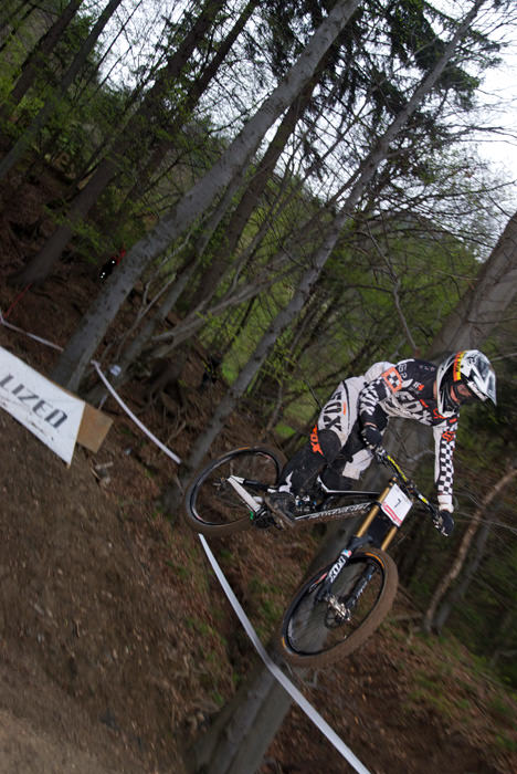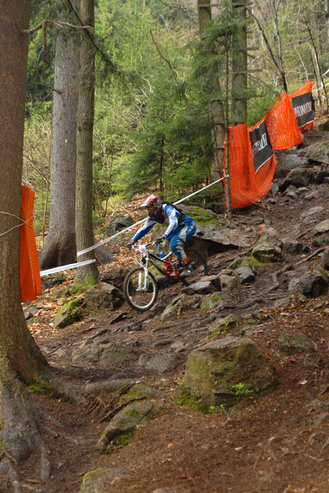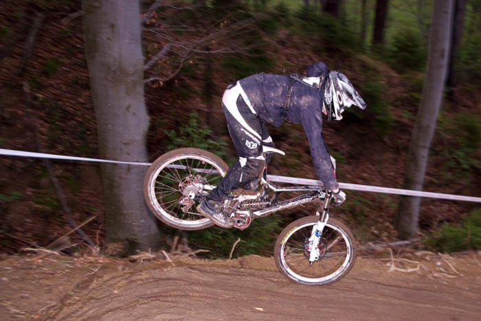 Danes me je na Downhill dirki Javor pričakalo povsem drugačno vreme, kot je bilo včeraj. Proga je bila precej bolj suha in predvsem je bilo ob progi veliko več gledalcev, kot jih bilo včeraj. Spustaši so bili “nedeljsko” oblečeni in divjanja ni bilo videti konca. Vendar se je danes zgodilo precej nesreč, oz. precej več tekmovalcev se je poškodovalo, ker so preizkušali svoje meje. Posledično se je tudi sama dirka precej zavlekla, saj so par tekmovalcev morali odpeljati v bolnišnico. Vmes je začelo deževati, kar je precej spremenilo pogoje na sami progi, ki je bila odlično pripravljena. Ker se je vse skupaj precej zavleklo in je vse bolj deževalo, sem se odločil, da zaključim svoje blatno poslanstvo.
