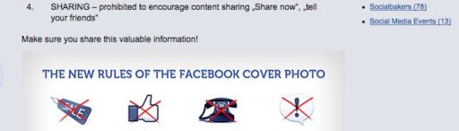 Včeraj sem pisal o tem, kako lahko vsak uporabnik ustvari kreativno naslovno fotografijo za Facebook Timeline, v tem zapisu pa opozarjam na štiri stvari, ki jih ne smete uporabljati v naslovni fotografiji za vaše strani na Facebooku. Facebook je ta pravila zapisal v svojih spremenjenih napotkih za strani: