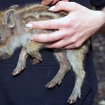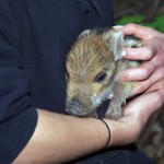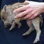 Ta divji prašiček je bil kot majhen slonček – s ščetinasto dlako in tihim cviljenjem. Njegovo srce je bilo zelo hitro in šele po parih minutah v naročju dekleta se je umiril in celo malce zatisnil očke. Ko je gasilec klical lovce, da smo dobili informacije, kaj storiti z njim, je bila največja panika v tem, da bi lahko bila zraven njegova starša!! Sicer pa so svetovali, da prašička spustimo v gozd, kjer bo že sam našel družino in bo vse ok.