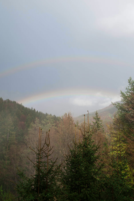 Rad imam mavrice. In velikokrat se ulovijo v moj objektiv. Tale, dvojna mavrica, je bila fotkana pred parimi minutami. V tem aprilskem vremenu le to ni tako težko, saj se dež in sonce menjujeta na par minut. Nekoč sem zapisal: