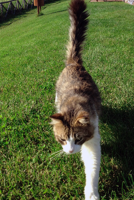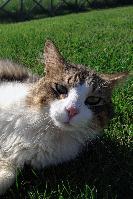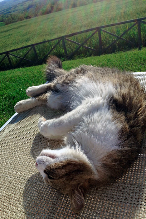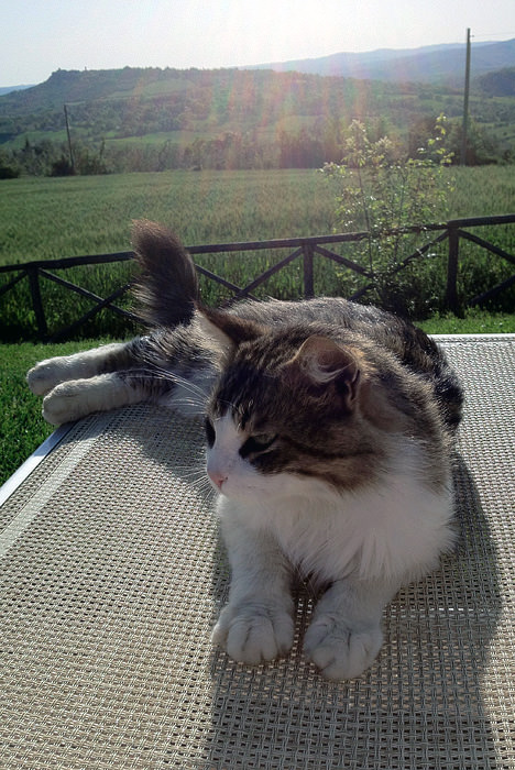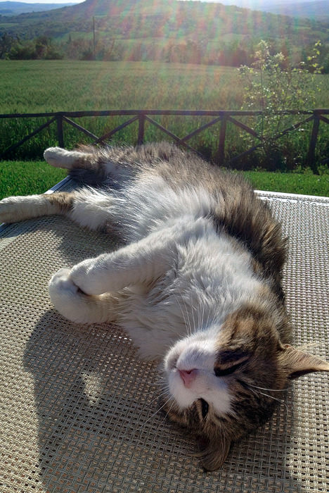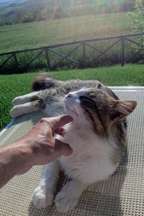 Nisem ljubitelj mačk, priznam, so mi pa všeč! V bistvu nisem nikoli povsem razumel nekaterih ljudi in njihove opsesije z mačkami. Ponavadi ni bila to ena, ali dve, ampak cel kup muck, ki jih imajo ljudje doma. Tale mucka na fotografijah pa se mi je prikupila. Namreč med ležanjem ob bazenu včeraj je tale mucka prišla do mene, skočila na ležalnik in se začela, dobesedno kot mačka okoli vrele kaše, motati okoli mene. V bistvu ji to niti ni bilo dovolj, s tačko je pokazala, da jo moram božati. In ko sem se je dotaknil, se je vrgla na hrbet in se prepustila božanju.