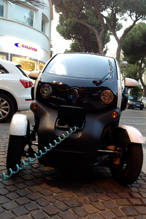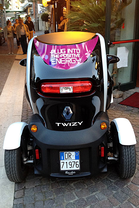 Renault Twizy je posebnež! Enosedežni električni avtomobil, ki je kot nalašč za v mesta, kjer ni prostora za parkiranje in ki ga lahko polniš doma! Pri nas ga še nisem videl na cesti, v Italiji pa jih je kar precej. In najbolj smešno je, ko ne veš točno ali je to skuter ali pa resnično avtomobil. Cena vozila je okoli 7000 eurov, plus temu znesku je potrebno prišteti še približno 50 eurov na mesec za najem akumulatorjev. V bistvu slednja postavka precej spremeni pogled na celoten avtomobilček, saj to prinese še dodatnih 600 eurov na leto, kar pa niti ni tako majhen znesek za enosedežnika.