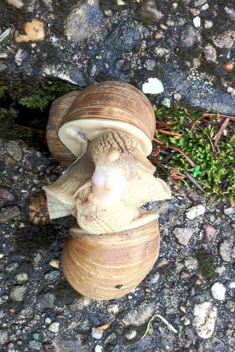 Hehe, dobr si ju ujel. Nisem pa sprva bil prepričan, da si ju zalotil med seksom, saj so polži hermafroditi (dvospolniki), pa sem si malo prebral o tem. Res so dvospolniki, vendar ne morejo oploditi samega sebe, torej se SEX še vedno dogaja. Lako pa katerikoli polž oplodi kateregakoli drugega polža :-)
