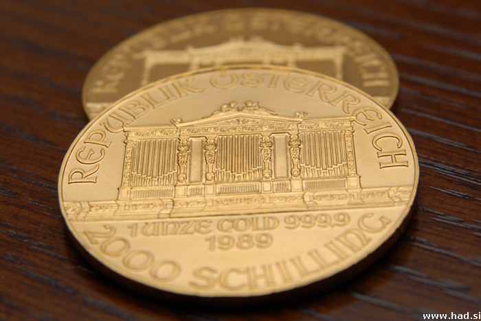O naložbenem zlatu sem prvič pisal leta 2007 v zapisu – Naložbeno zlato in varčevanje, kjer sem na koncu izpostavil ceno za zlati kovanec Vienna Philharmonic Gold Coin, s težo 1 trojska unča (kar je ekvivalentno 31,1035 g), ki je imel takrat vrednost 528 € (25.3.2007). Danes, ima taisti kovanec Vienna Philharmonic Gold Coin precej višjo ceno – 1367 €, po ceniku družbe Moro, ki trguje z zlatom, srebrom in ostalimi kovinami.