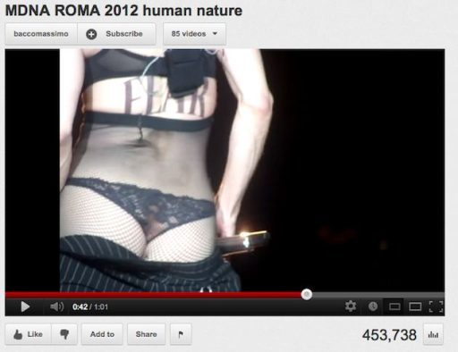 Vprašanje, kaj se dogaja s pevko Maddono, sploh ni na mestu? Od nekdaj je bila že takšna, vedno je rada provocirala in pokazala svoje golo telo. Tudi to, da je med pesmijo Human Nature v Istanbulu pokazala brdavičko in med isto pesmijo v Rimu svojo rit, oz. svoje tangice, zanjo ni nič novega. Vendar pa so to novice, ki polnijo časopise in spletne portale. In Madonna zelo dobro ovlada svoje delo in natanko ve, da mediji skočijo na takšne provokacije in se bodo o tem razpisali!