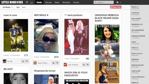 V vsakodnevni poplavi novih družbenih omrežij, je od sedaj na voljo tudi LittleMonsters.com. In kaj je tako posebnega na njem? To, da je to produkt, ki so ga v startupu BackPlane naredili za Lady Gaga, ki je s tem postala lastnica svojega družbenega omrežja. Svojim oboževalcem – Little Monsterjem bo omogočila precej podobne funkcionalnosti kot jih poznamo iz Pinteresta (deljenje lepih fotografij), Digga (deljenje povezav in ostalih vsebin) in možnost “chatanja” (kot jo poznamo iz Facebooka, ali Google+), zraven pa še dodane “dogodke”, kjer bodo lahko njeni oboževalci kupovali karte online!