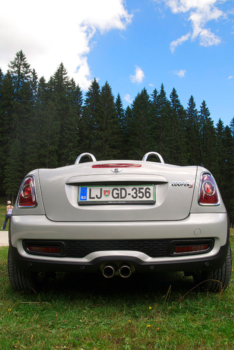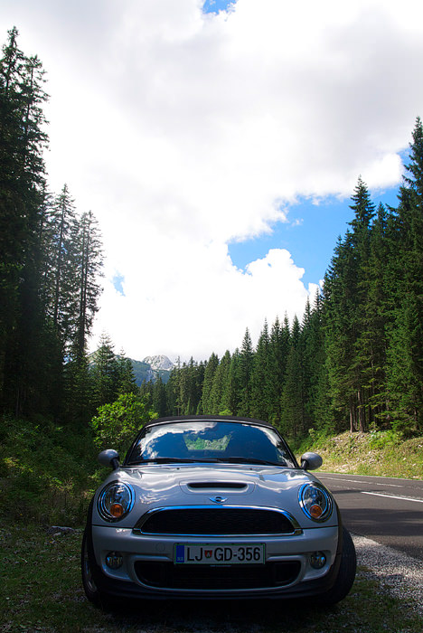 In kakšna je povezava Mini Cooper S Roadster s Pokljuko in jurčki? Zelo velika. Namreč kot vsak voznik kabrioleta, se najprej odpelješ z njim proti morju. Ko ugotoviš, da se pri 34 stopinjah ne da voziti brez strehe, potem se spraviš nad 1000 metrov, kjer je hladneje, predvsem pa je vožnja bolj prijetna in dejstvo, da nisi na očeh vseh, je še toliko boljše. In serpentince, ki peljejo od Bleda proti Pokljuki, so ravno pravšnje za “beštijo” od Minija.