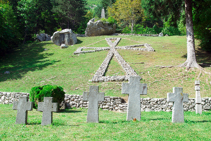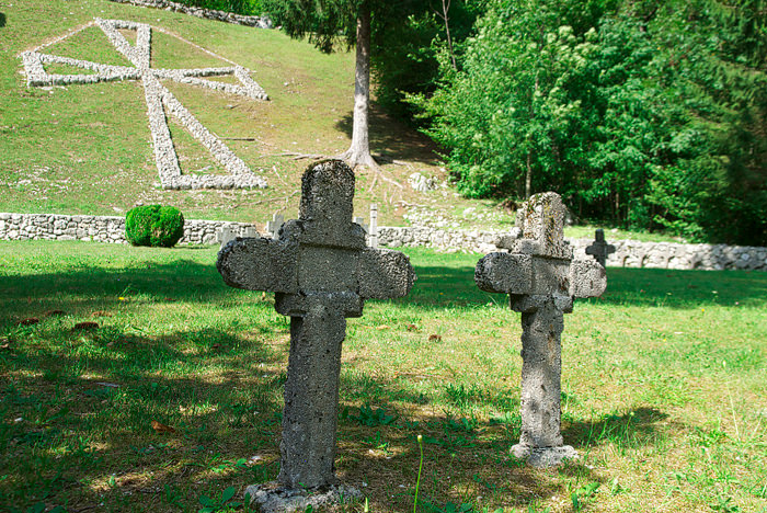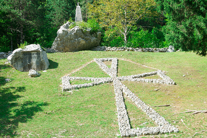 V kraju Soča leži vojaško pokopališče nekdanje avstro-ogrske cesarske kraljeve armade iz 1. svetovne vojne, kjer je pokopanih več kot 600 avstro-ogrskih vojakov, ki so padli v bojih med junijem 1915 in oktobrom 1917 na bojiščih Soške fronte od Javorščka do Krna. Najbolj opazen je seveda velik, iz kamenja narejen, križ. Pokopališče leži ob cesti proti Vršiči, poleg civilnega pokopališča in cerkve svetega Jožefa.