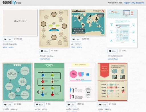 Brezplačno orodje. Vsebuje cel kup tem, s katerimi si lahko pomagate pri izdelavi infografike. Omogoča shranjevanje v svoj profil. Problem je, da se ne da kopirati teksta, ampak ga je potrebno tipkati. Zelo veliko elementov, ki se dajo zelo dobro prilagajati.