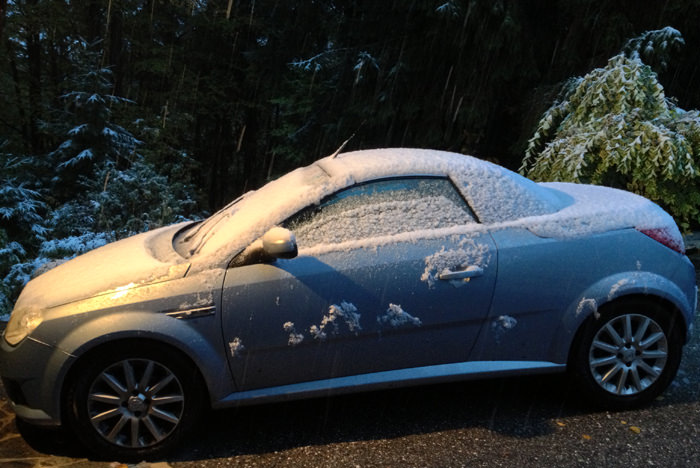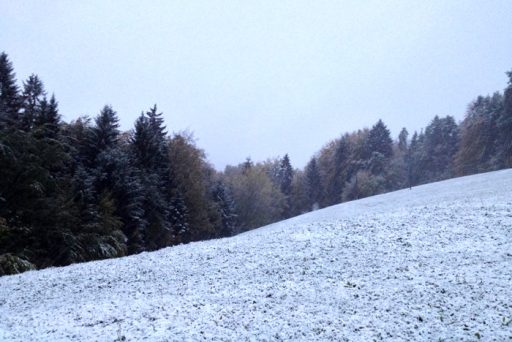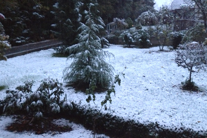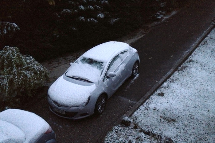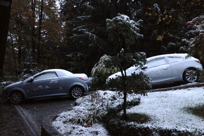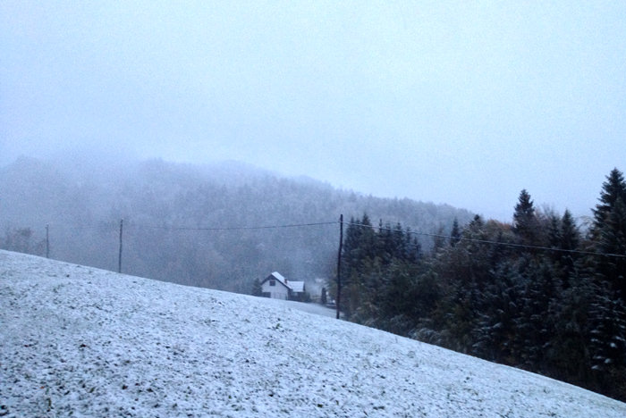 Vendar danes zjutraj se vremenoslovci niso zmotili. Dejansko je držala njihova napoved, kljub temu, da sem bil včeraj celo popoldne prepričan, da bomo imeli samo poplave in nič snega. Vendar nekje okoli 2.ure ponoči se je začelo bliskati in pokati, kot da bo konec sveta in začelo je snežiti.