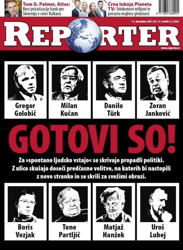 Za domnevno spontano ljudsko vstajo se skrivajo propadli slovenski politiki, med njimi Danilo Türk, Zoran Janković in Gregor Golobič, ki skušajo z ulico doseči predčasne volitve, na katerih bi nastopili z novo stranko. V njej naj bi se povezali člani strank, ki so postale »gotove« na zadnjih volitvah in se tako skrili za svežimi obrazi. Očitno so skritim organizatorjem stvari ušle iz rok, saj skrajneži iz njihovih vrst napovedujejo ustanovitev nove začasne vlade na vsesplošni slovenski ljudski vstaji, ki bo 21. decembra v Ljubljani.