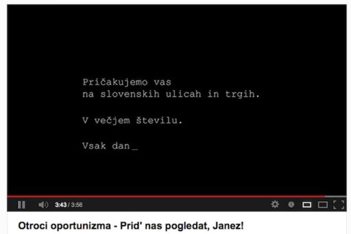 Zelo dobra priredba komada skupine Otroci socializma – Pejd ga pogledat Brane, v malce bolj primerni obliki za ta čas – Otroci oportunizma – Prid’ nas pogledat, Janez! In definitivno odličen komad za bližajoče se proteste, ki bodo 21.12.2012, ko bo tudi “uradno” konec sveta! Ali je to poziv, da naj pride protestnike pogledat tudi Janez Janša? Verjetno da!?!