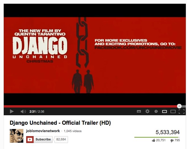 17. januarja prihaja v kinematografe njegov zadnji film – Django Unchained, ki se dogaja leta 1858 v času pred državljansko vojno v ZDA in prikazuje življenje črnih sužnjev, oz. odnos belih gospodarjev do njih. V filmu je Tarantino poskrbel za odlično igralsko zasedbo – Jamie Foxx (Django), Christoph Waltz (Dr. King Schultz), Leonardo DiCaprio (Calvin Candie), Kerry Washington (Broomhilda), Samuel L. Jackson (Stephen) in znova dokazal, da karkoli se on loti, postane uspešnica. Film Django Unchained je nominiran za tri oskarje! In niti ne dvomim, da bo polnil kinodvorane in bo uspešnica. Danes ponoči pa je dobil nagradi zlati globus v kategorijah: Najboljša moška stranska vloga: Christoph Waltz (Django brez okovov), Najboljši scenarij: Quentin Tarantino (Django brez okovov),
