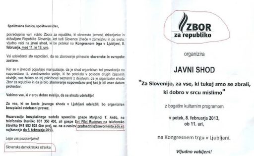 “SDS ni organizator zborovanja, se ga pa bo z veseljem udeležila, ker menimo, da Zbor za republiko odpira prave teme za razpravo” (vir)