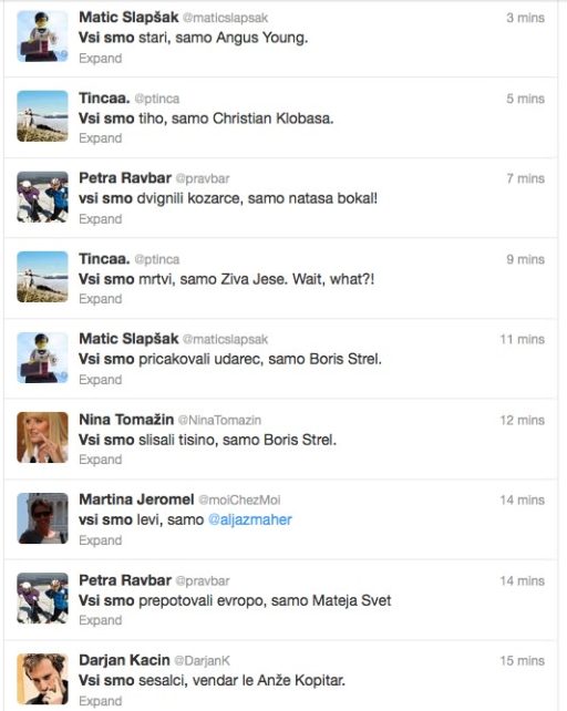 Včasih se na Twitterju zgodijo spontane stvari. Danes recimo je bil cel Twitter preplavljen s sporočili v smislu – Vsi smo gibčni, samo Mitja Okorn. Ker ni bilo nobenega #hashtaga, sem se odločil, da jih nekaj zberem za zanamce – da ne oddidejo v /dev/null. Priznam, cel kup tvitov je bilo vrhunsko kreativnih in prav lepo je bilo opazovati, kako je vsak trenutek več tviterašev sodelovalo v “tem početju”. Evo, primeri: