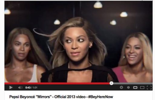 Podjetje Pepsi je skupaj s pevko Beyoncé pred parimi dnevi predstavil svoj nov oglas – Mirrors. Sodelovanje uspešnega podjetja z uspešno pevko se pozna tudi na številu ogledov oglasa na YouTubeu – v dveh dneh je številka presegela 2.500.000 ogledov. Embrace your past, but Live For Now
