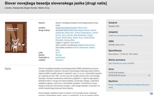 Slovar novejšega besedja slovenskega jezika, ki sta ga uredila Aleksandra Bizjak Končar in Marko Snoj prinaša cel kup zanimiv besed, ki jih lahko uporabljamo. Slovenski jezik naj bi obsegal od 300.000 do 400.000 besed. V zadnjih 20 letih pa smo “ustvarili” 6399 novejših slovenskih besed. No, številka je precej višja, ampak v SNB se jih je uvrstilo toliko. Par besed: vuvuzela, viagra, biodiverziteta, franšiza, evroskeptik, t-shirt, vinjetaa, gandžaa, all inclusive.. Cena slovarja je 33 eurov.