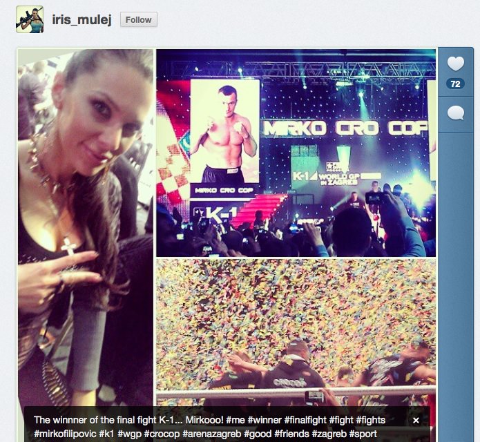 Ampak tokrat se bom obregnil ob nekaj drugega. Iris Mulej objavlja veliko fotografij iz raznih prireditev, kjer ima svoja dva prsta vedno v enakem položaju.