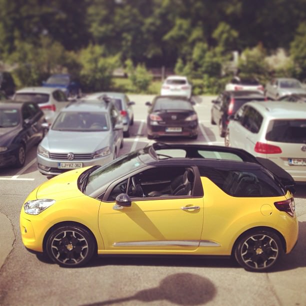 Citroen DS3 Cabrio je bil rumene barve, s črno streho, ki se zapira zelo natančno in kar mi je bilo še posebej všeč, saj sem dobil vozilo ravno v deževnem obdobju, je to, da lahko streho zapiraš med vožnjo – do hitrosti 12o km/h. Vozilo je, za razliko od Citroenov, ki sem jih vozil v mladosti, povsem nekaj drugega. Trdo podvozje – športno, ki zelo dobro drži vozilo na cesti, predsvem pa preseneča voznike, ki jih “kinder jajček”, kot ga je nekdo poimenoval suvereno prehiteva.