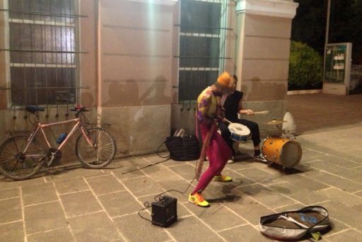 Ste kdaj pomislili, da je lahko smučka tudi glasbeni inštrument? Jaz nisem! Vendar sem imel včeraj zvečer možnost opazovati duet, pred Avgustovim hramom na Trgu Forum v Puli, ki me je navdušil. Bobnar in “igralec na smučko”, ki je s svojim doma narejenim inštrumentom, sta pritegnila pozornost zdolgočasenih turistov. Kljub temu, da zvok ni ravno nekaj vrhunskega, pa je bila to odlična zabava za vse mlade nadebudneže, ki so skakali okrog. Verjetno tudi zaradi same pojavnosti “muzkontarja na smučko” – oblečen je bil v smučarki kombinezon, na glavo kapo in smučarska očala.