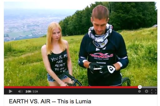 Mislav Mironović (MTB Freestyle rider) in Matjaž Klemenčič (zmajar) sta adrenalinska športnika (sponzorirana s strani Red Bulla). Za promo video nove Nokie – Lumia 920 so se v Renderspaceu odločili, da bodo celoten video posneli zgolj in samo s tem telefonom – več njih, kot je razvidno iz samega posnetka je bilo uporabljenih. In prav zanimivo je videti kako v videu nastopa Tonči Klarič, Primož Zanoškar, Maša Sara Modic…