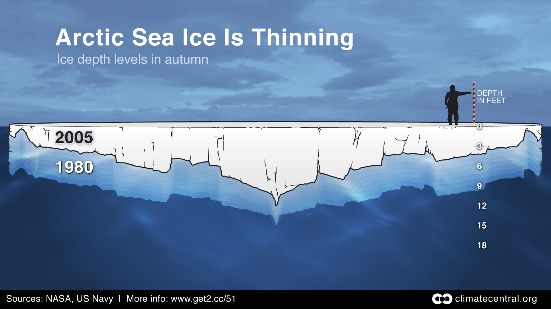 Še pred nekaj leti je bilo to nepredstavljivo, a v zadnjih tridesetih letih je izginilo 75 % arktičnega ledu. Arktika je vse leto v ledu samo še na skrajnem severu. Južneje se del ledenega pokrova v času kratkega arktičnega poletja stopi. V zadnjih desetletjih to območje postaja čedalje večje. Ledeni rob se pomika proti severu. Klimatologi se bojijo, da je kritična točka že prekoračena: že leta 2020 bi lahko prvič v zgodovini človeštva arktični ocean poleti ostal brez ledu.
