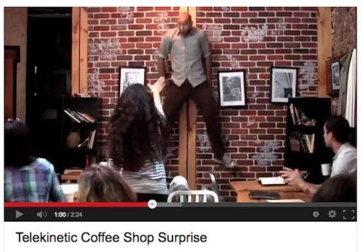 Telekinetic Coffee Shop Surprise je eden izmed tistih videoposnetkov, ki si jaz zapomnimo. Zapomnimo zaradi same izvedbe in zaradi viralnosti – v treh dneh si je video ogledalo 30.000.000 ljudi, kar ga uvršča v vrh viralnih videoposnetkov. In kaj je na njem tako posebnega, da bi ga vsi želeli pogledati?