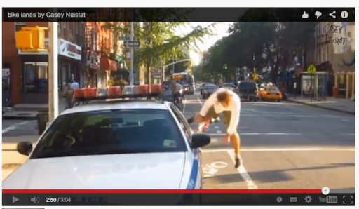 In video, ki ga je posnel Casey Neistat in ima več kot 9.000.000 ogledov, je nastal kot kritika policije, ki kaznuje kolesarje, ki se ne vozijo po kolesarski stezi. Kazen sicer ni visoka, vendar se je nemogoče držati zapovedi policista – vedno vozi po kolesarski stezi!