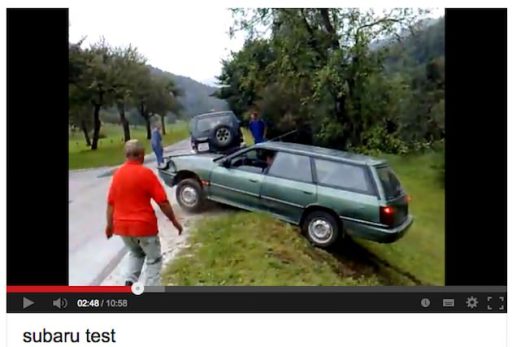 Spodnji videoposnetek sicer ne vsebuje smrti, vendar bi lahko voznik Subarujau povsem nonšalantno konkuriral za Darwinovo nagrado. Še več – glede na njegovo početje, bi si jo tudi verjetno prislužil. Zanimivo je, da me je ta posnetek nasmejal že leta 2008, ko sem ga prvič videl in da me nasmeji še sedaj, ko si ga ogledam – preprosto ne morem verjeti, da je vse to lahko resnično.