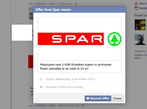 Facebook že dolgo časa ponuja možnost posebnih ponudb (offer), vendar do sedaj še nisem opazil, da bi se jih slovenska podjetja, ki so aktivna na Facebooku in ki zbirajo lajke in tekmujejo med seboj, posluževala. V bistvu je verjetno problem v meni, ker ne lajkam vsega povprek na Facebooku in potem ne dobim takšnih in drugačnih ugodnosti, ki bi mi lahko prišle prav.
