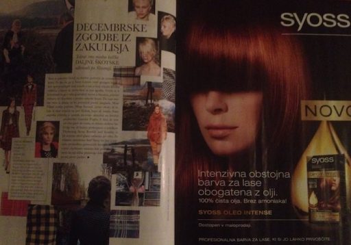 Če pogledam sedaj drugače. Za Elle sem plačal 4,99 eura! Namesto da bi dobil vsebino, sem dobil oglase. Oglase, ki sem jih večino že videl. Samo kot primer – če kupim Vogue, potem vem zakaj ga kupim – oglasi za Valentino, Chanel, Marc Jacobs, Louis Vuitton, Fendi, Versace, Cesare Paciotti sploh ne izpadejo kot oglasi, ampak kot del revije, ki se navezujejo na modne smernice, ki prihajajo. Sicer se nekaj takšnega poskuša tudi v naših revijah, vendar ne izpade nikoli tako, ker se ne delajo kreative za vsak medij posebej, ampak obstaja ena kreativa za vse medije.