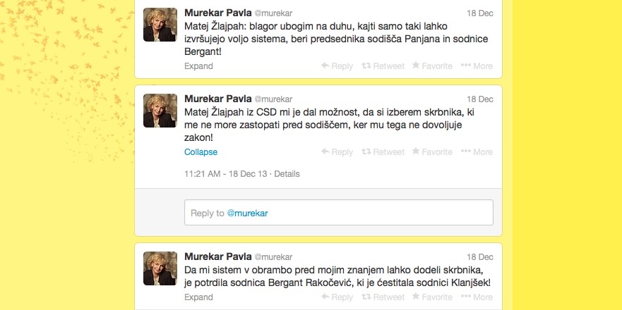 Upam, da so bili tviti samo napačno razumljeni in da nimajo dejanske veze s stanjem osebe iz tega zapisa? Upam, da mi bosta stranka SDS in Pavla Murekar poskusila razložiti to situacijo, ki je milo rečeno – čudna?!