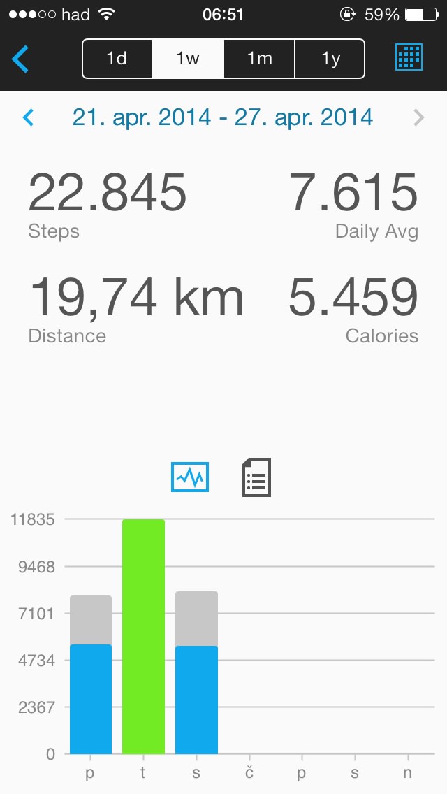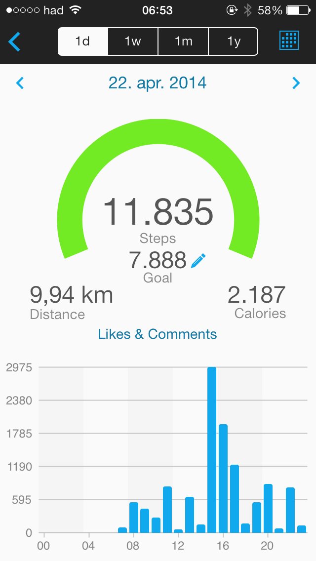 Po prvem tednu uporabe sem še vedno navdušen nad napravo, vendar precej manj nad dejstvom, da se vseeno premalo gibljem – da preveč časa presedim in da se težko zbrcam v rit in spravim ven v naravo. Kljub temu, da me vivofit opozarja na to, je težko sredi sestanka vstati in povedati, da je “priležnica” tako sporočila in da moram narediti, kar mi ona zaukaže!